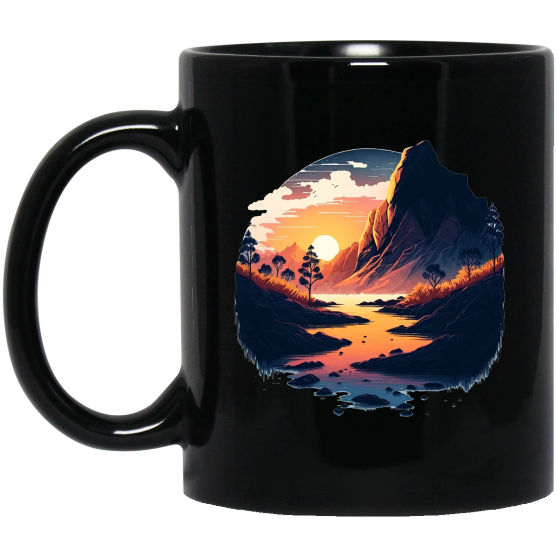 Simple Picture Of Sunset With Rock And River, Best Landscape Gift Black Mug