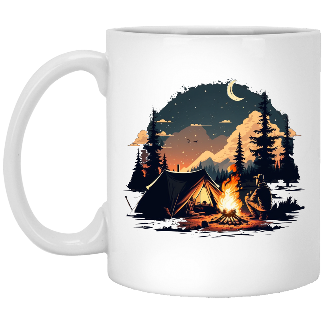 Outdoor Enthusiast Enjoying A Peaceful Camping Trip Under The Stars White Mug