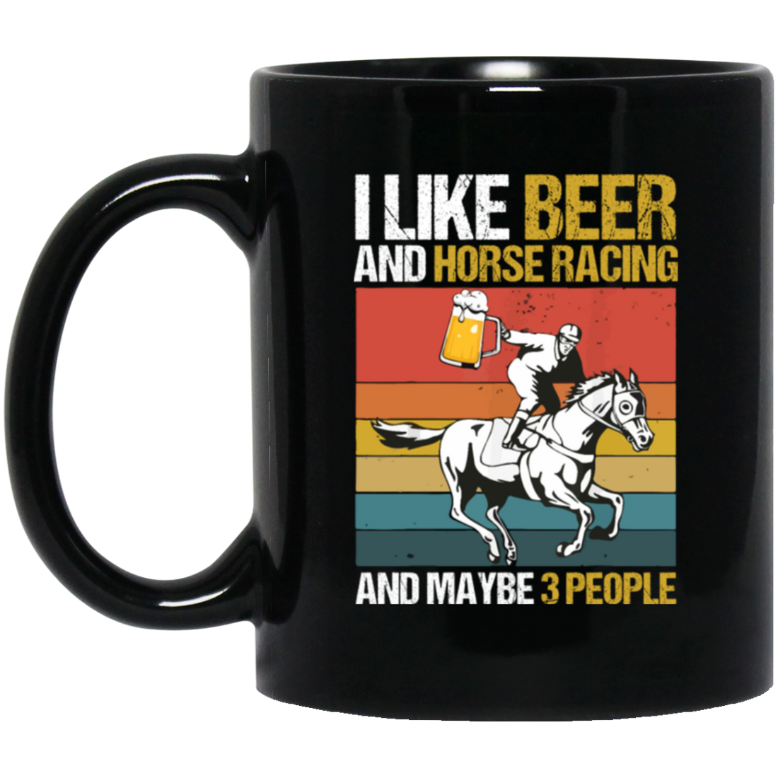 Retro Beer Lover, I Like Beer And Horse Racing And Maybe 3 People Black Mug