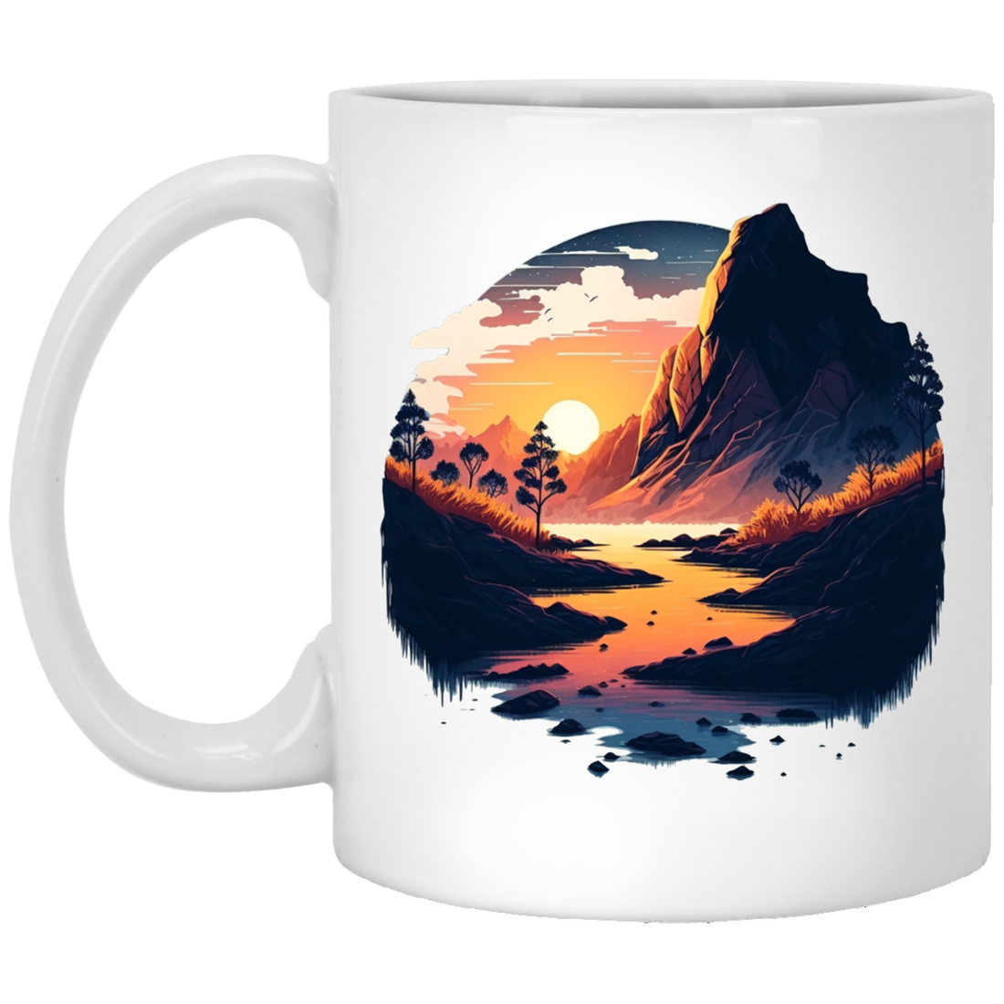 Simple Picture Of Sunset With Rock And River, Best Landscape Gift White Mug