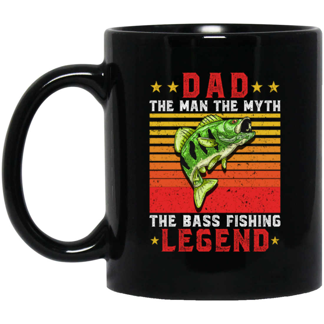 Love Fish, Dad The Man, Dad The Myth, The Bass Fishing Legend Gift Black Mug