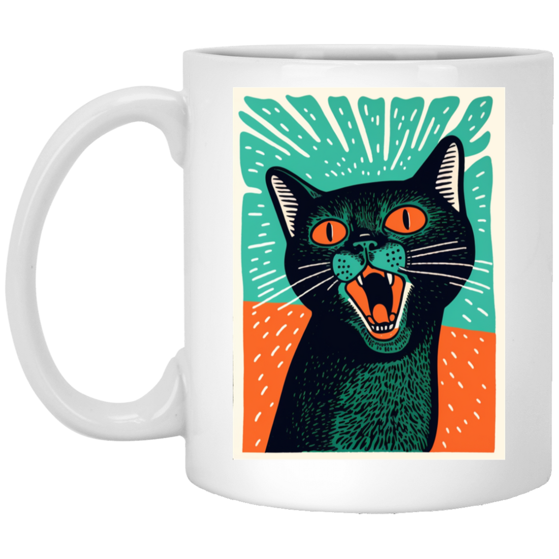 Meowing Love Gift, Cat In Retro Style, Lovely Cat, Funny Cat Poster White Mug