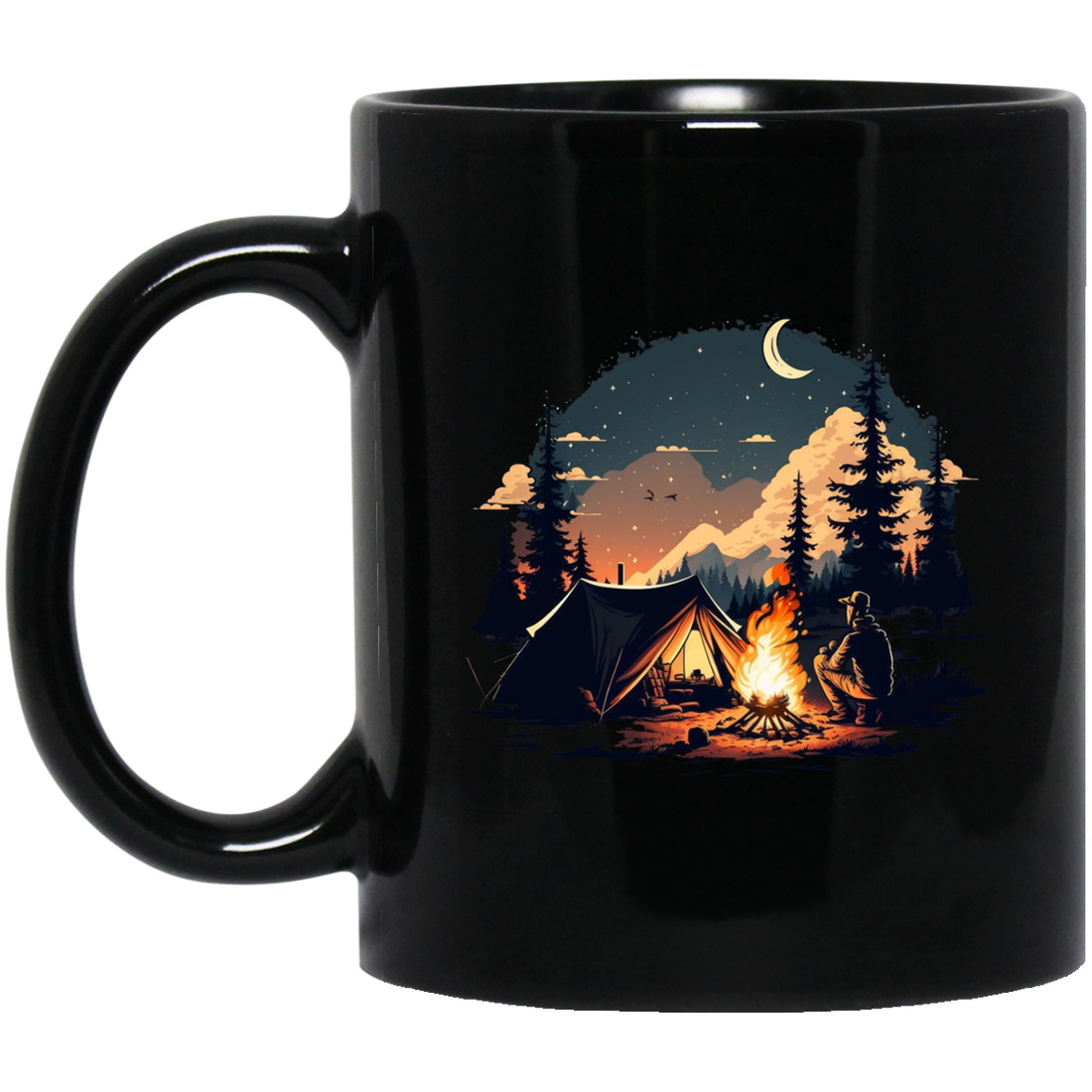 Outdoor Enthusiast Enjoying A Peaceful Camping Trip Under The Stars Black Mug