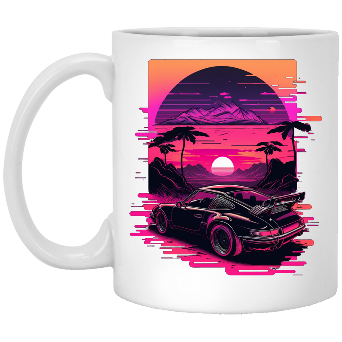 Race Car, Car Lover, Racing Car In Neon, Best Car Gift, Car On Race White Mug