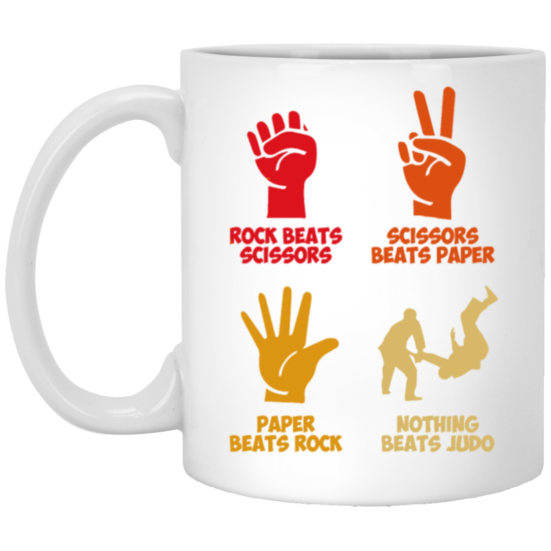 Rock Beats Scissors Beats Paper Beats Rock But Nothing Beats Judo Retro White Mug