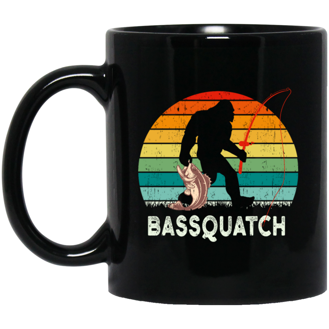 Retro Bass Quatch Angler Fish Vintage Gift For Friend Black Mug