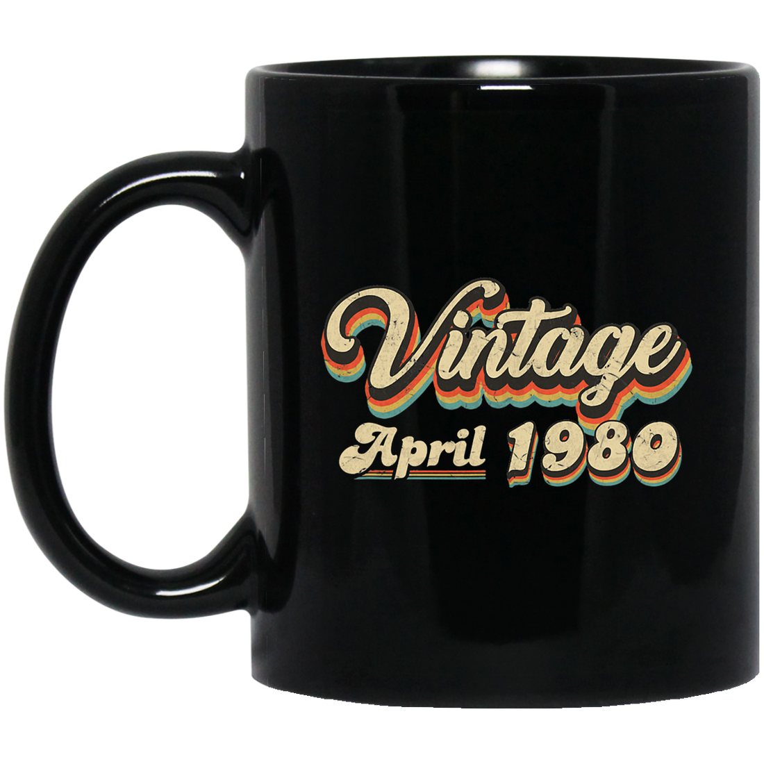 Birthday Gift Vintage April 1979 Forty Years Black Mug