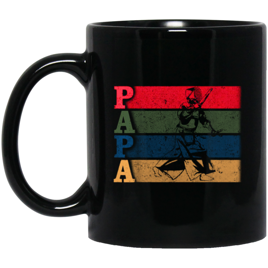 Vintage Martial Art, Retro Kendo Papa, Funny Dad Father Loe Gift Black Mug