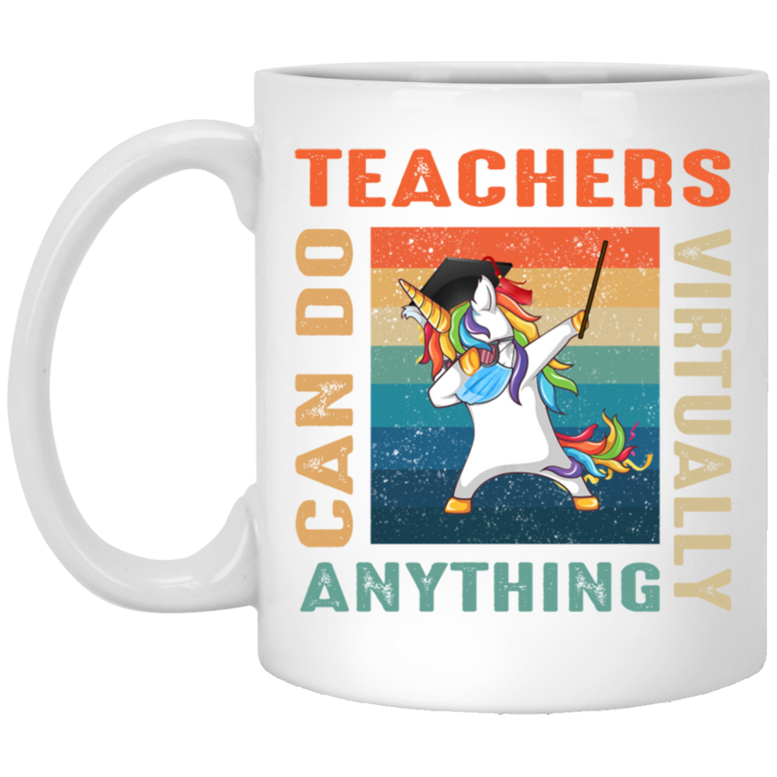 Vintage Teachers Can Do Virtually Anything, Unicorn Template White Mug