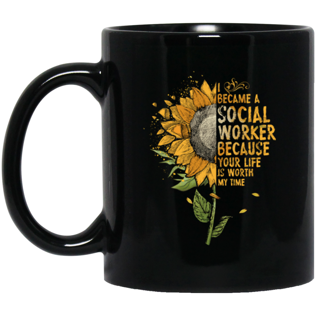 Sun Flowers, I Became A Social Worker Black Mug