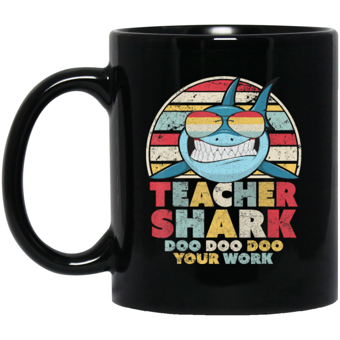 Teacher Shark Doo Doo Doo Your Work, Retro Teacher Shark Black Mug