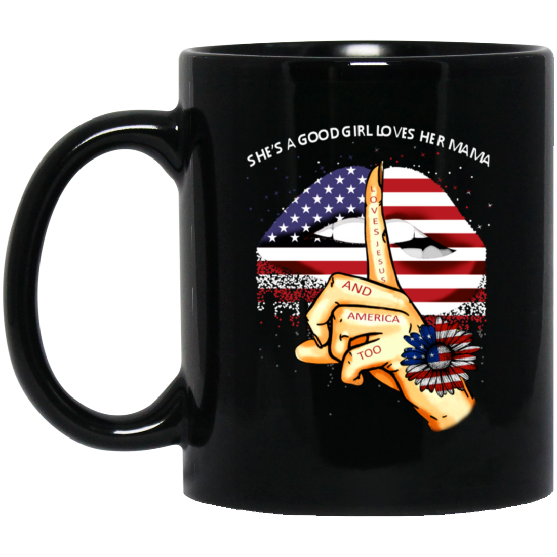 She Is A Good Girl Loves Her Mama American Lips Black Mug
