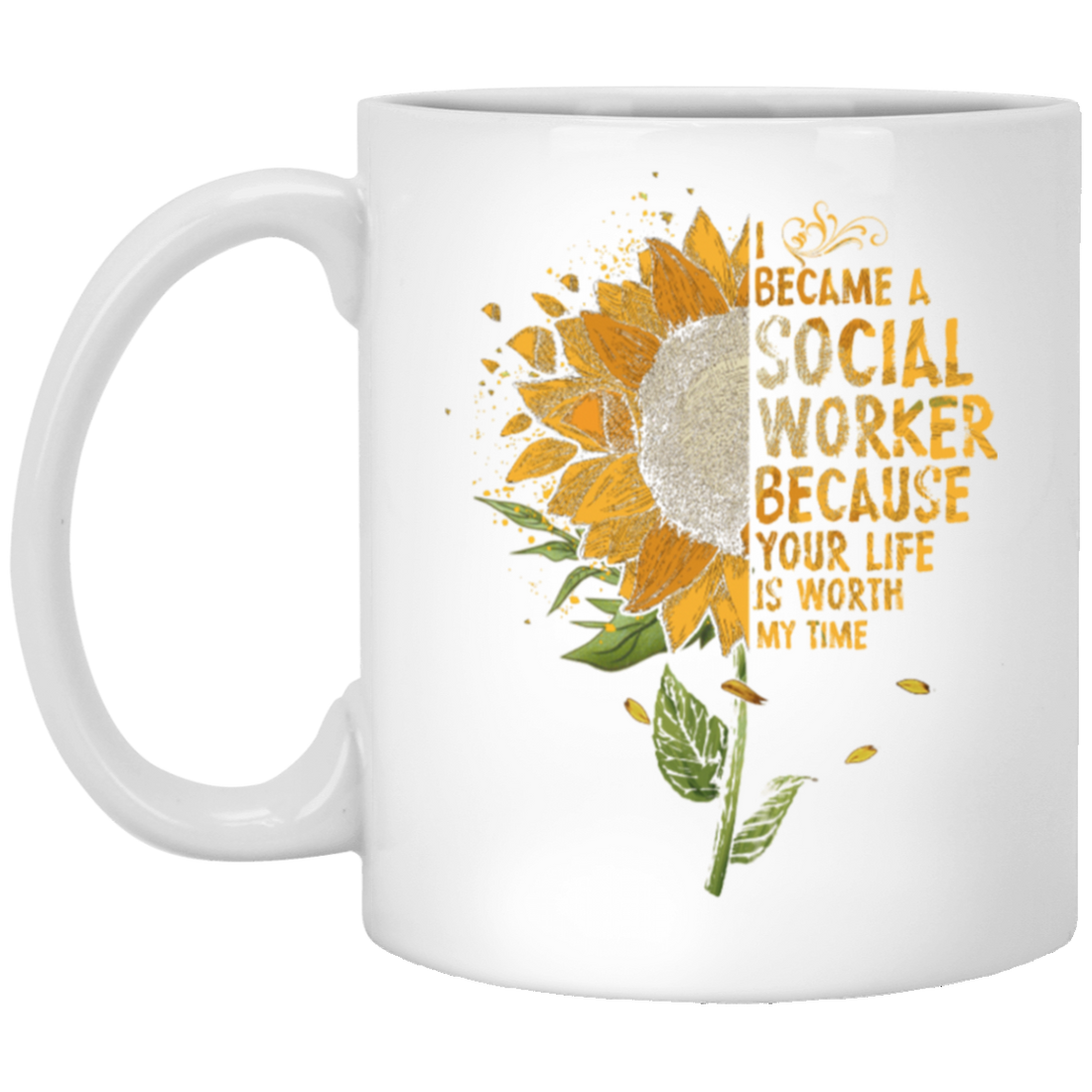 Sun Flowers, I Became A Social Worker White Mug