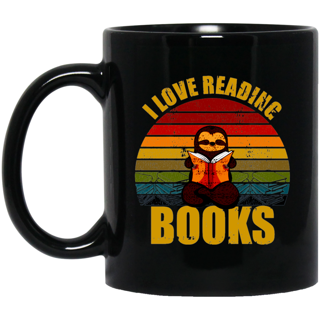 Sloth I Love Reading Books Black Mug