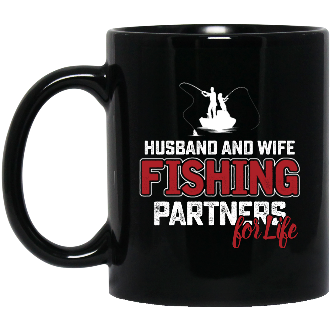 Fishing Couple, Husband And Wife Fishing, Partners For Life, Partner Fishing Black Mug