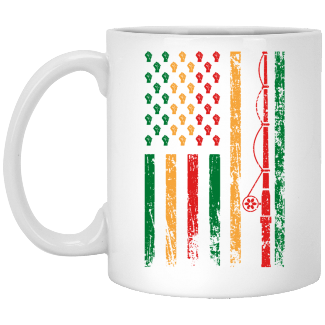 Fishing Rod, American Flag, Black Juneteenth, American Sport, Black History White Mug
