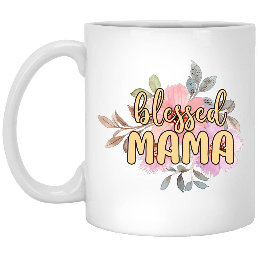 Blessed Mama, Love Blessed Mama, Flower Gift For Mom, Love Mama White Mug