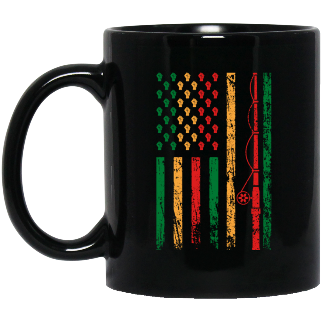Fishing Rod, American Flag, Black Juneteenth, American Sport, Black History Black Mug