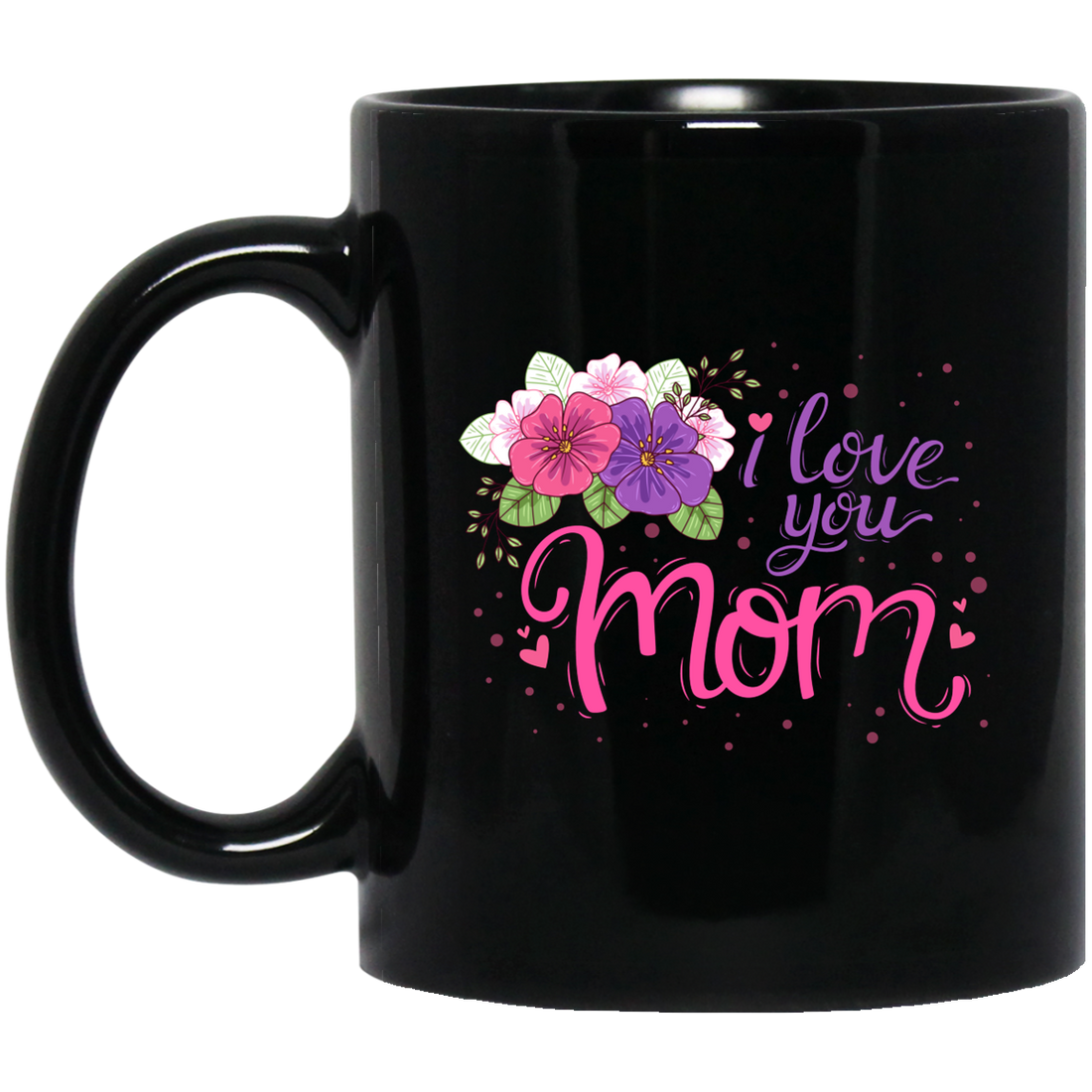 I Love You Mom, Flower For Mother, Best Of Mother, Love Mama Gift Black Mug