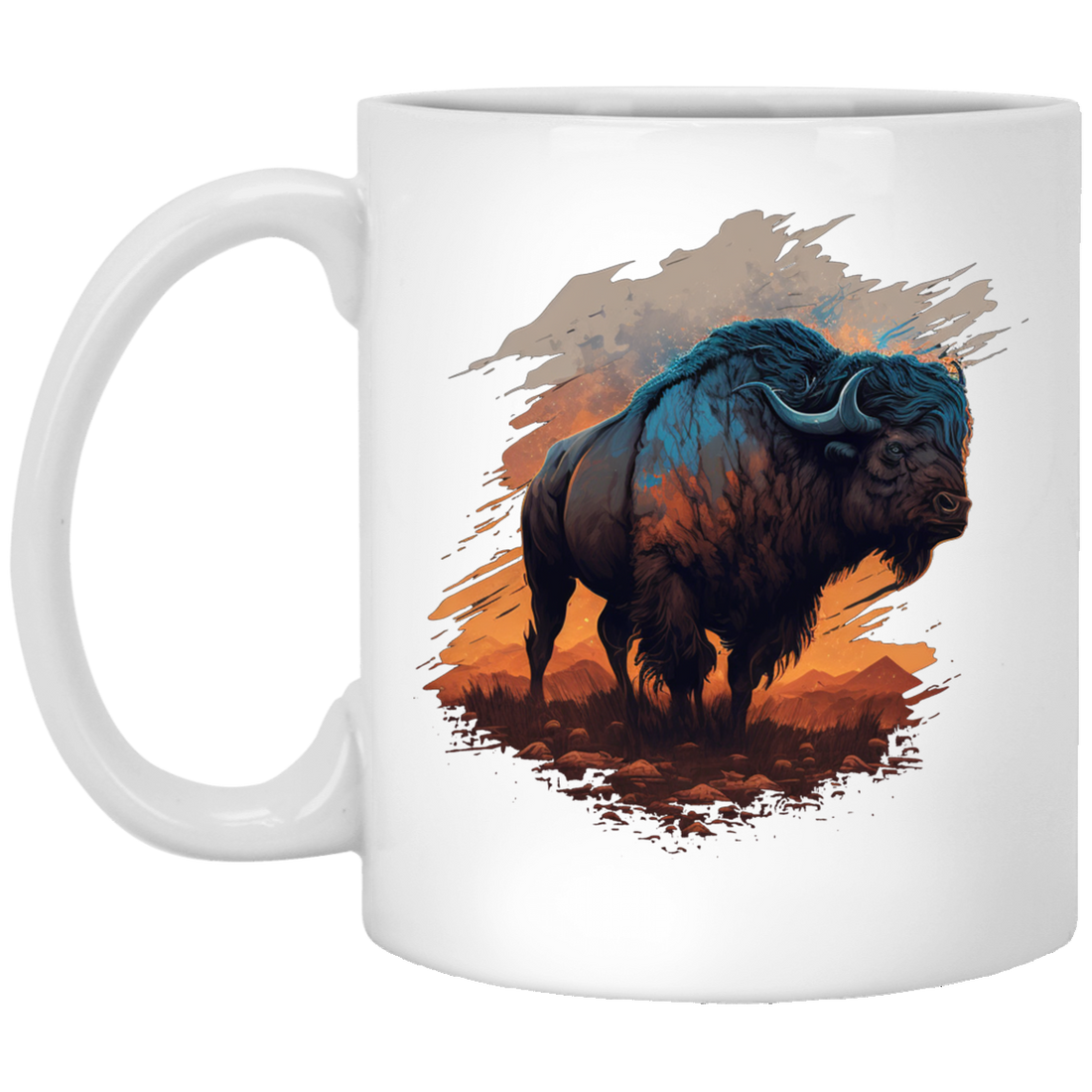 Buffalo Love Gift, Buffalo On A Field, Vintage Style, Cool Buffalo White Mug