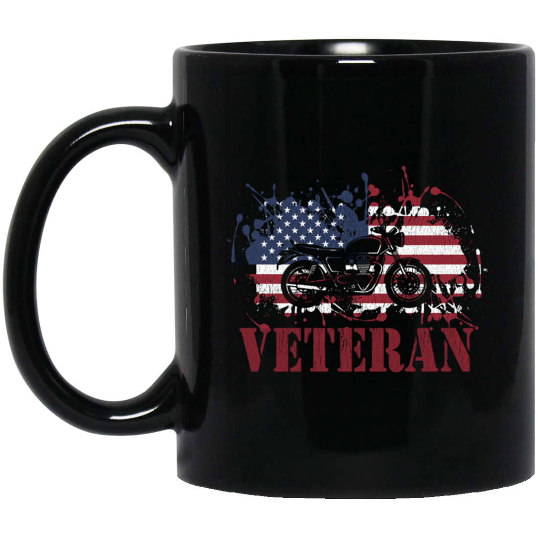 Motorcycle Veteran, Military Biker, American Flag, American Veteran Black Mug