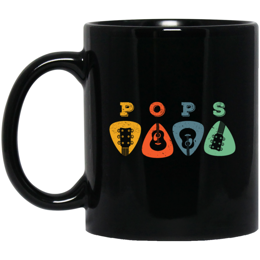 Pops Guitar, Guitar Picks, Retro Guitarist Black Mug
