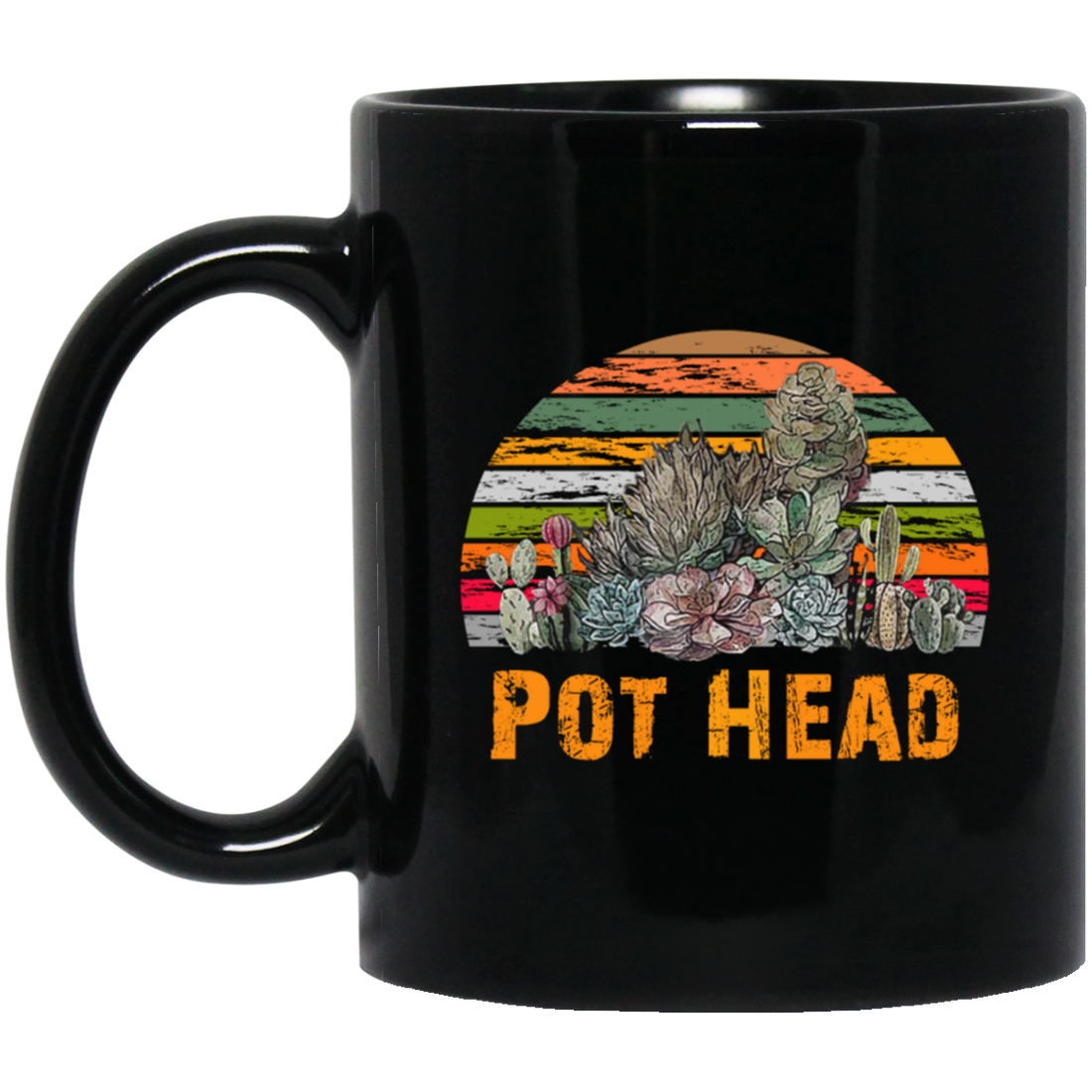 Pot Head Stone Flowers Vintage Retro Sunset Black Mug