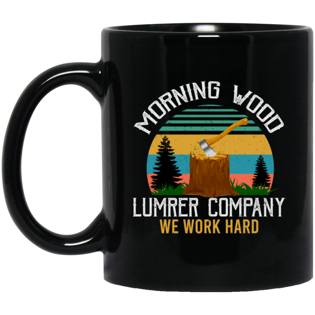 Morning Wood Retro, Lumber Company Funny Camping Carpent Black Mug