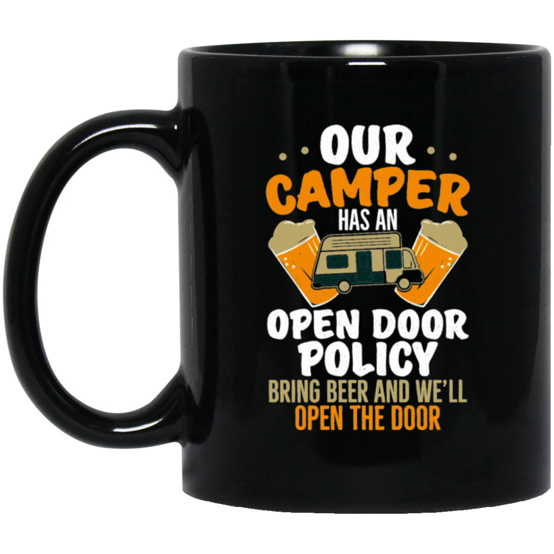 Our Camper Has An Open Door Policy Bring Beer And We Will Open The Door Black Mug