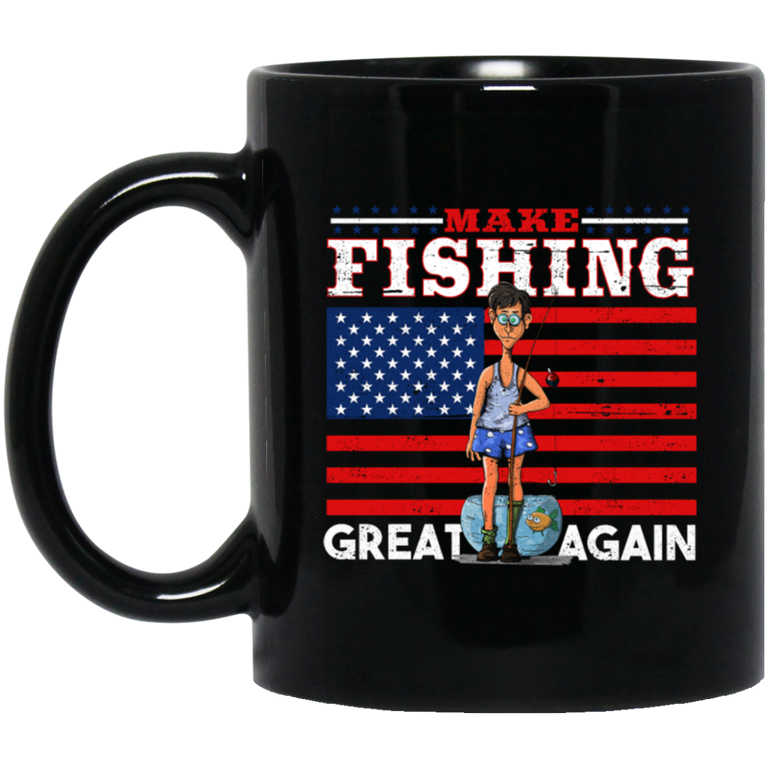 Make Fishing Great Again, American Flag, American Fisher Black Mug