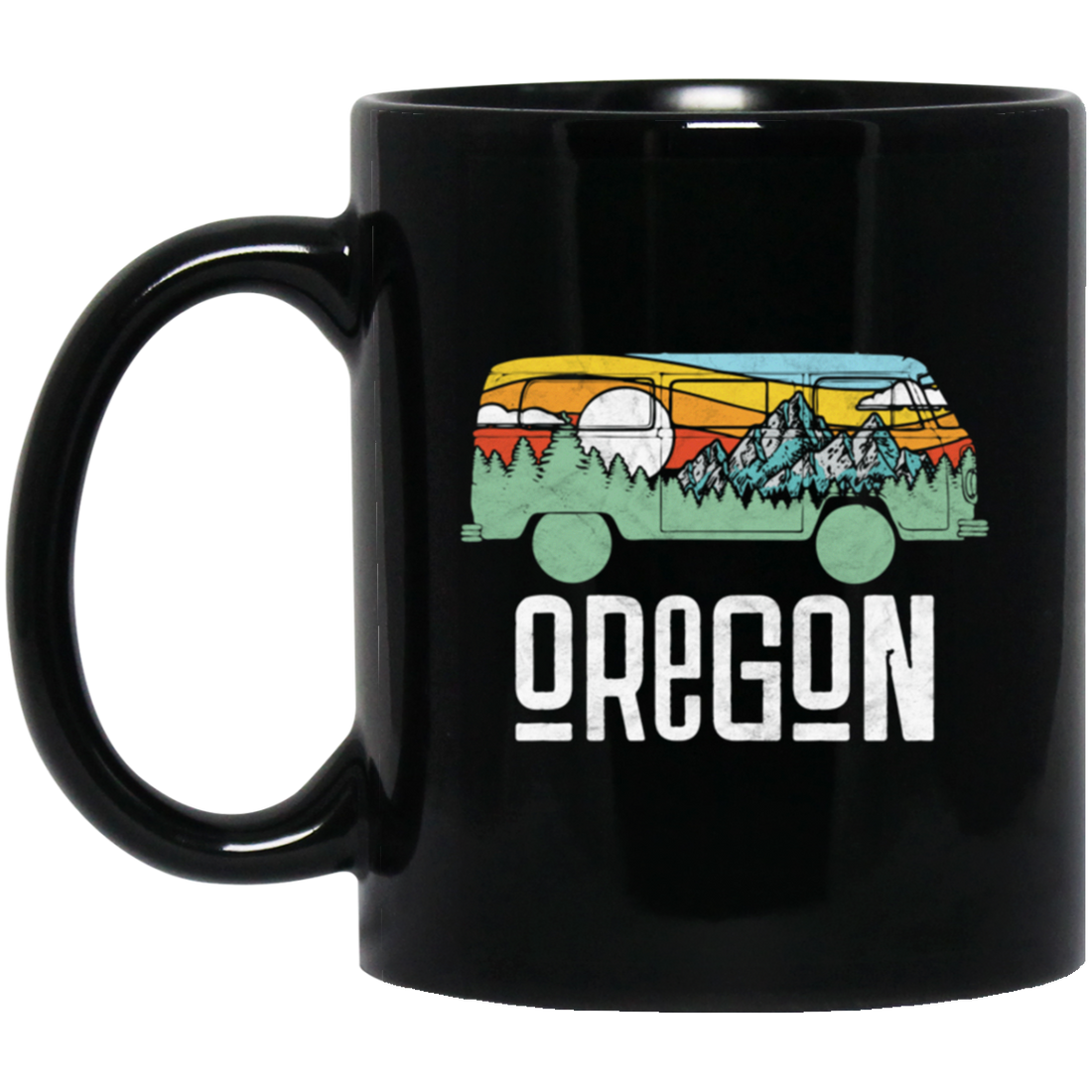 Oregon Love Gift, Outdoor Hippie, Van Nature Retro, National Park Black Mug