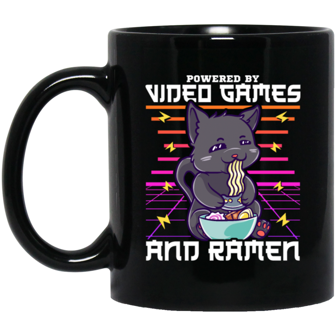 Ramen Anime Cat, Powered By Video Games Black Mug