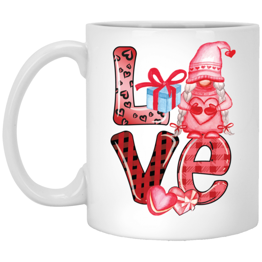 Love Gnome, Pink Leopard, Cute Love, Cute Valentine White Mug