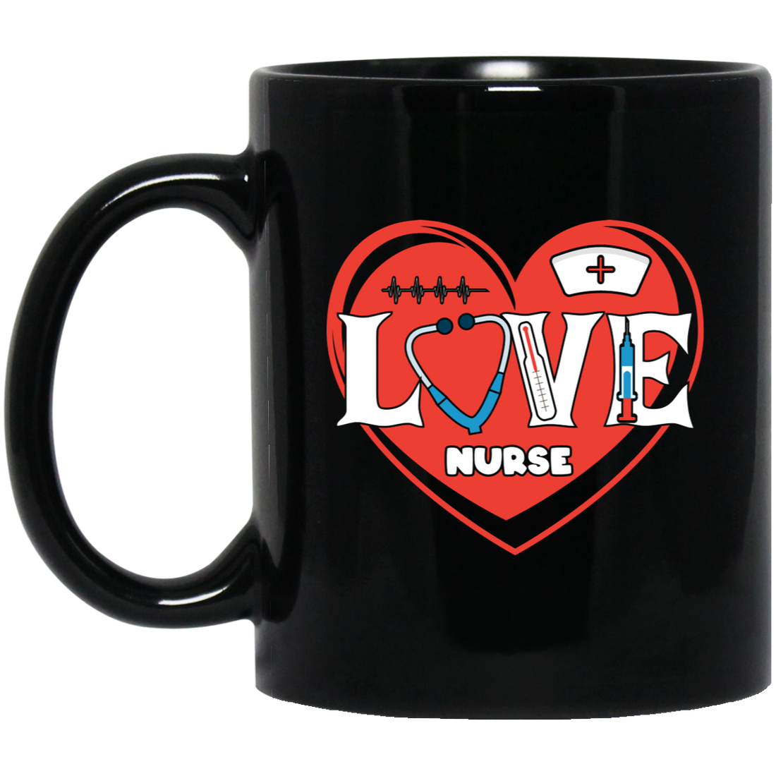 Love Nurse, Cute Nurse, Nurse Lover, Nurse Valentine, Valentine's Day Black Mug