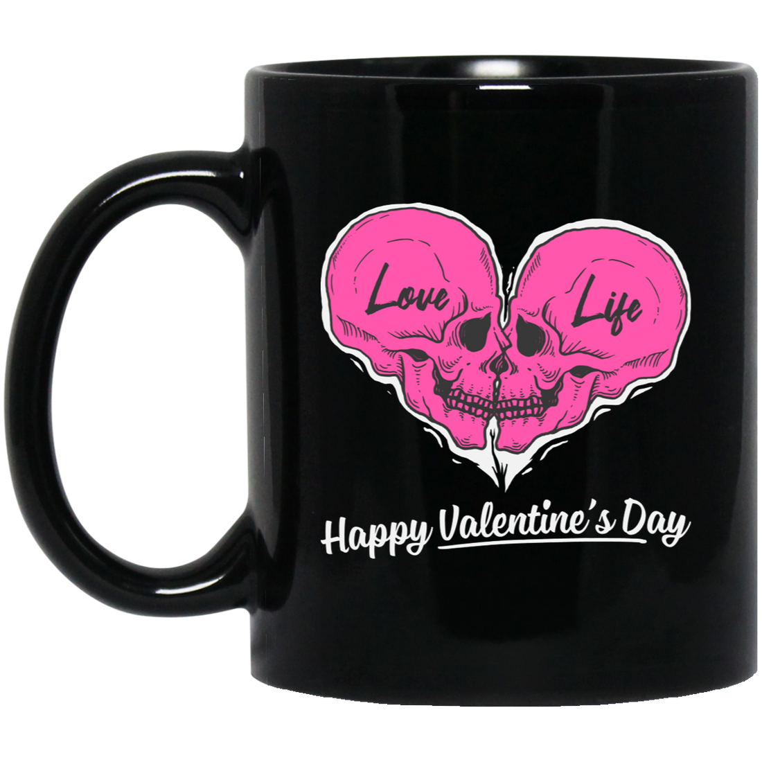 Love Life, Happy Valentine's Day, Skull In Heart Shape, Trendy Valentine Black Mug