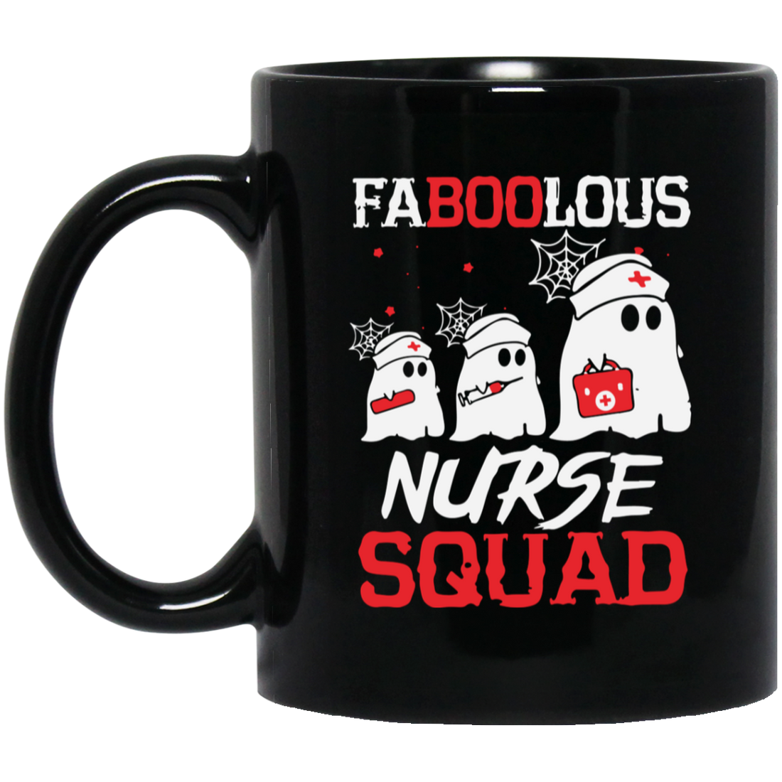 Faboolous Nurse Squad, Boo Ghost Nurse, Nurse Squad Halloween, Trendy Halloween Black Mug