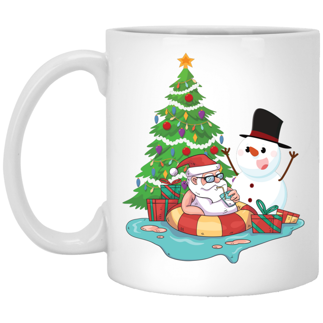 Funnny Santa, Merry Christmas Snow White, Santa In Pool, Trendy Halloween White Mug