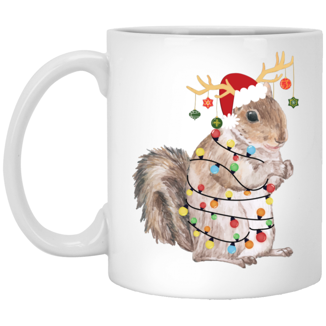 Squirrel Christmas, Merry Christmas, Christmas Lights, Funny Squirrel White Mug