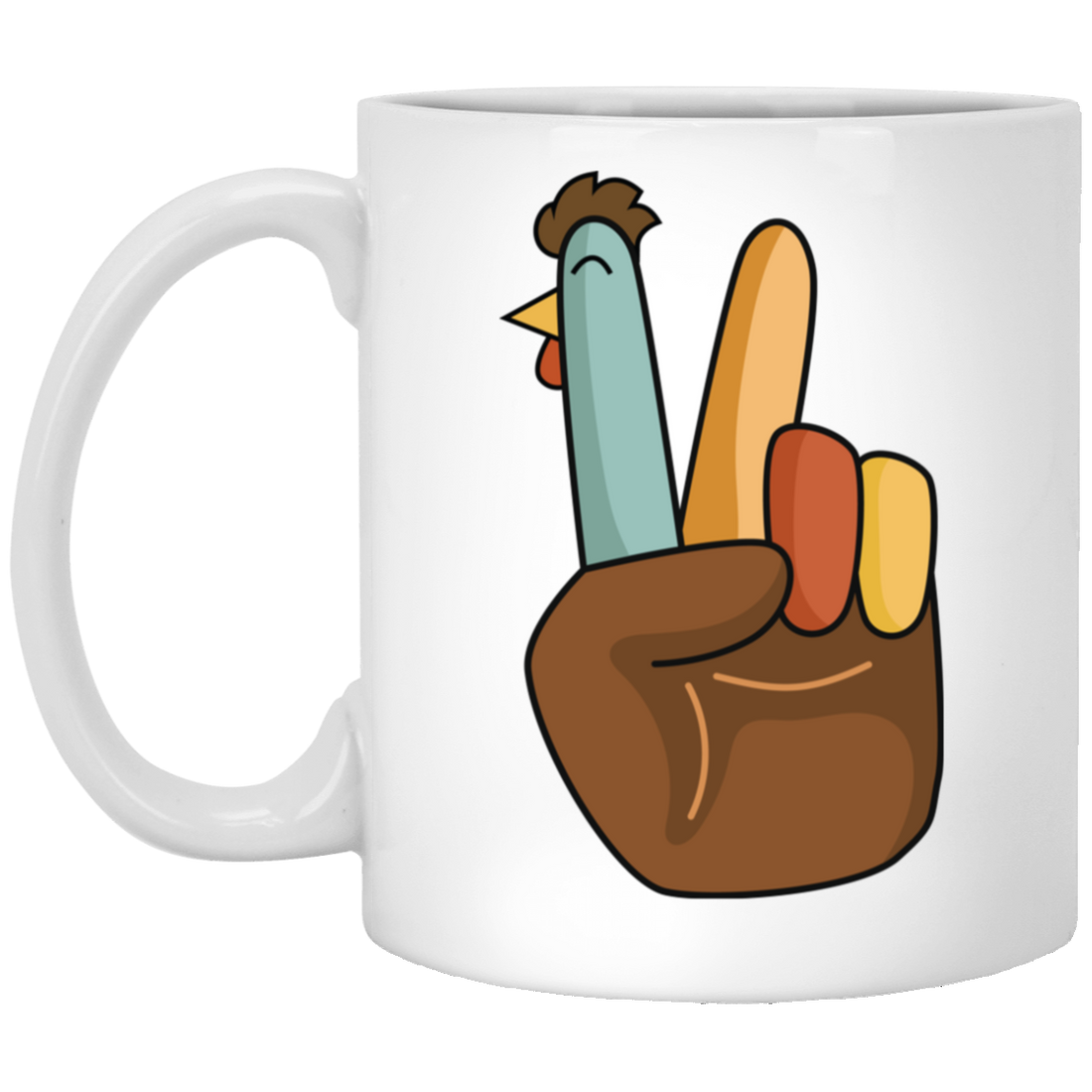 Hi Fall, Thanksgiving's Day, Peace Sign, Peace Sign Turkey, Funny Turkey, Turkey's Day White Mug