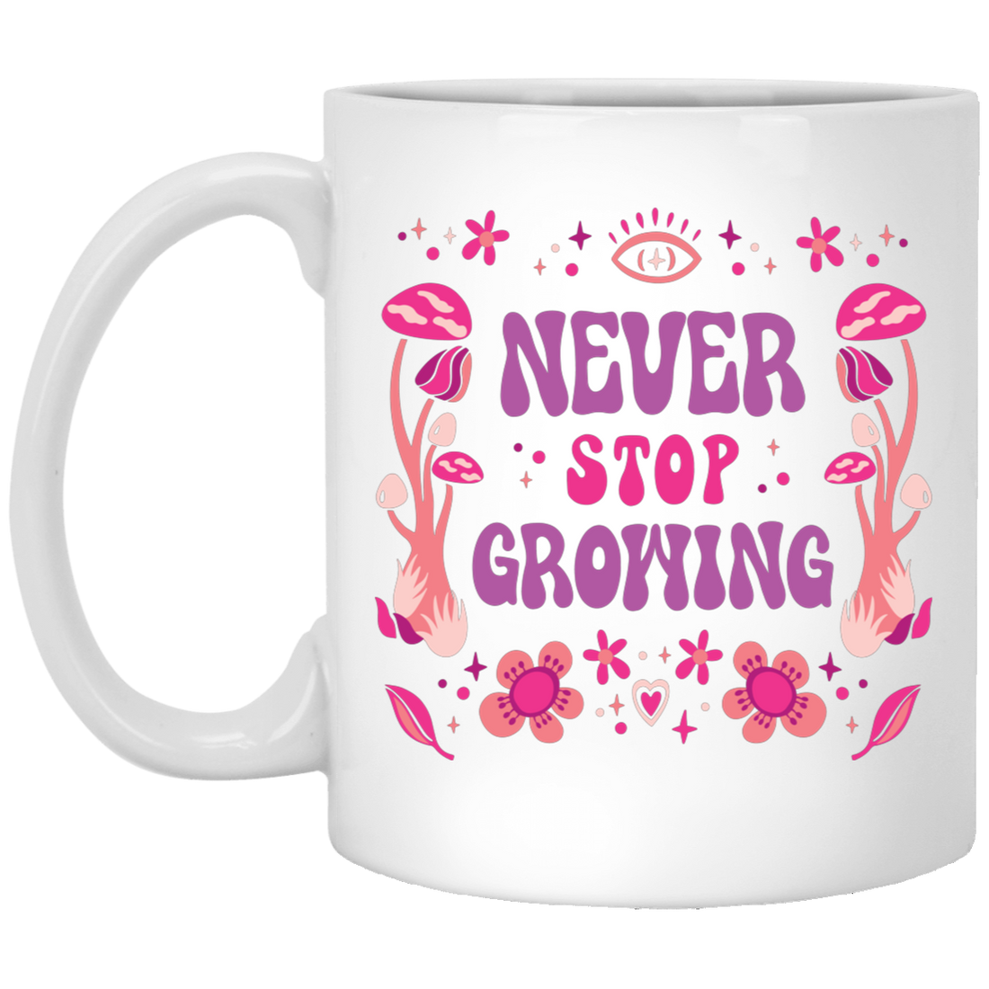 Never Stop Growing, Mushroom Groovy, Groovy Growing White Mug