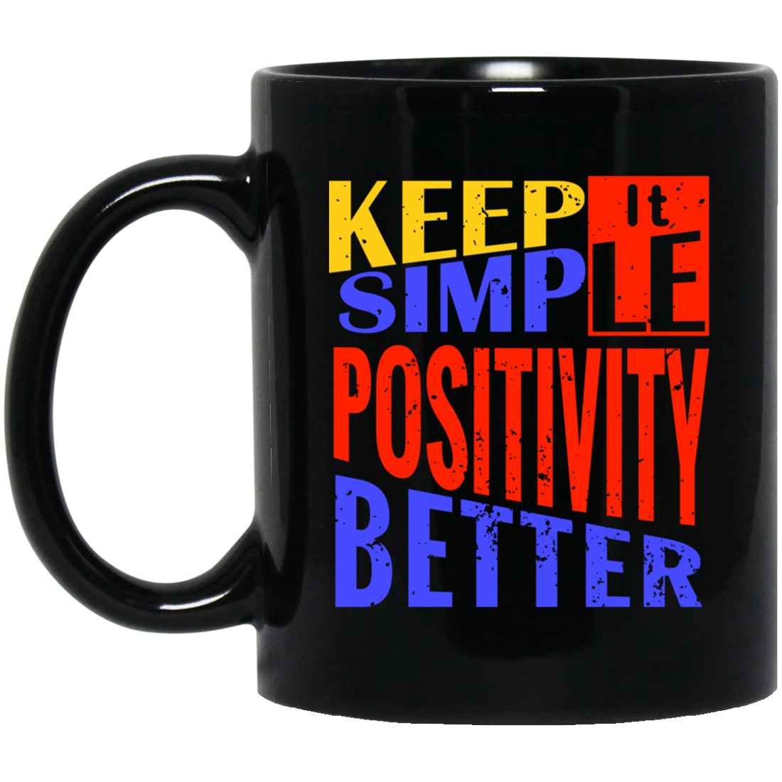 Keep It Simple, Positivity Better, Retro Positivity Black Mug