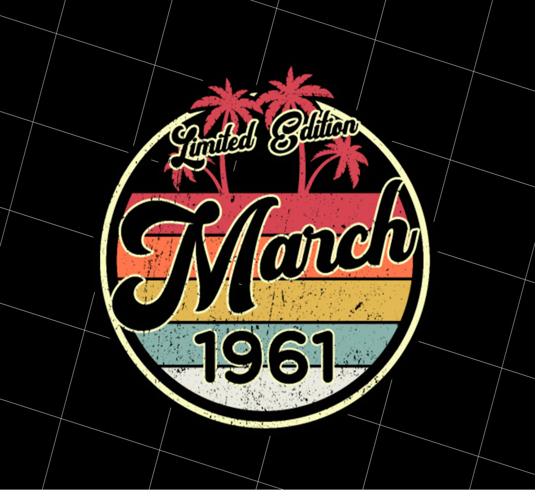 Vintage March 1961 Birthday Gift Idea Png, Love March 1961 Png, Retro 1961, Png Printable, Digital File