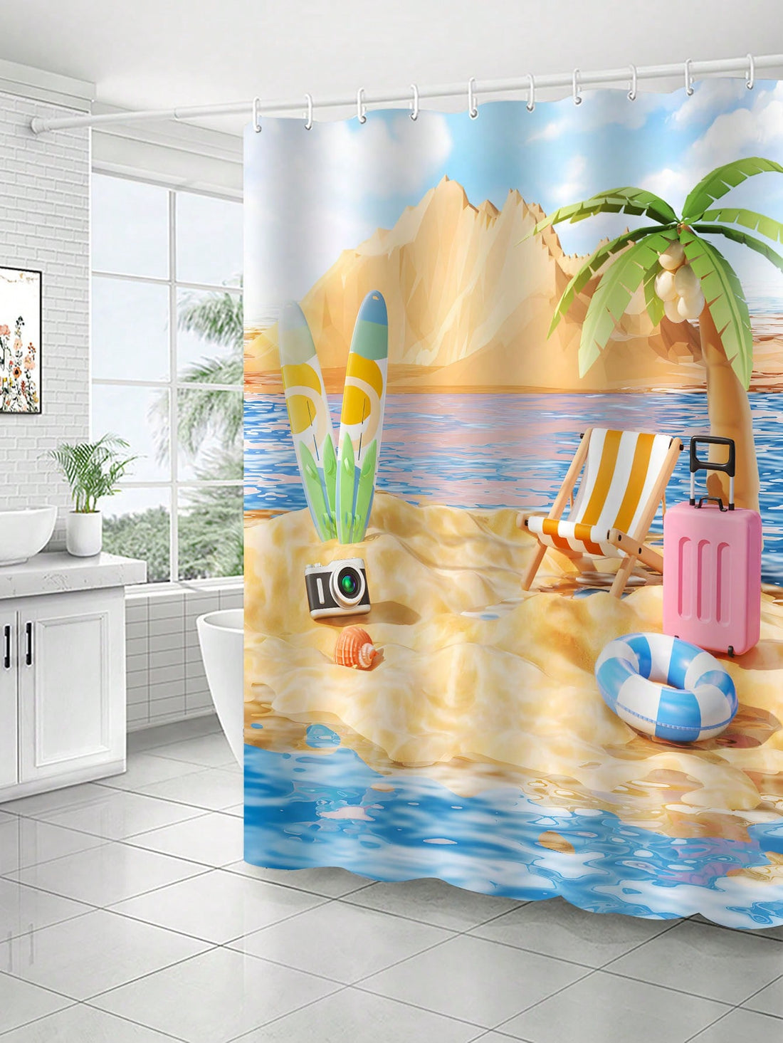 Transform your bathroom into a tropical paradise with our shower curtain. Featuring a serene ocean...