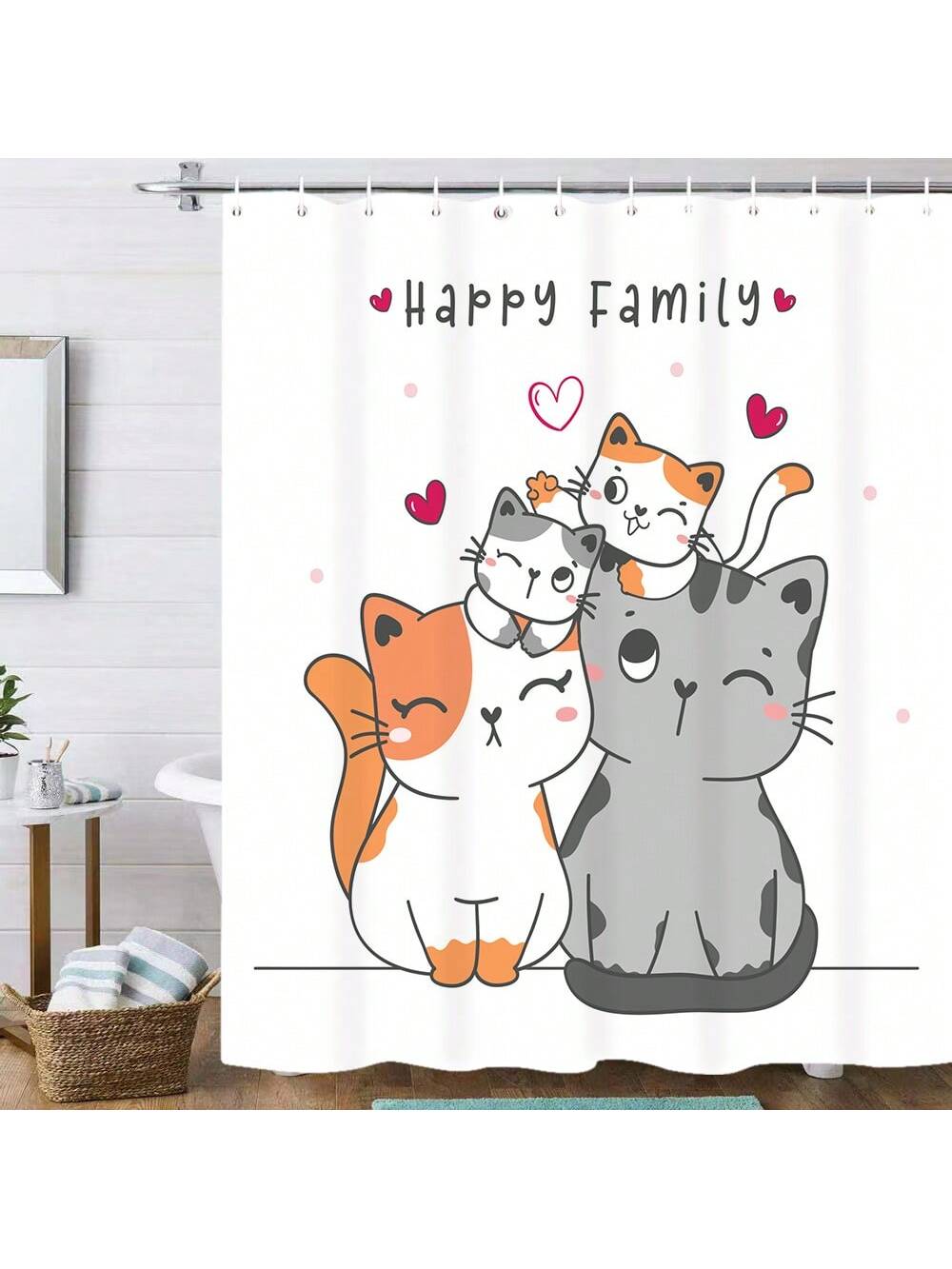 Whimsical Cartoon Cat Family Shower Curtain: A Fun and Functional Bathroom Decoration