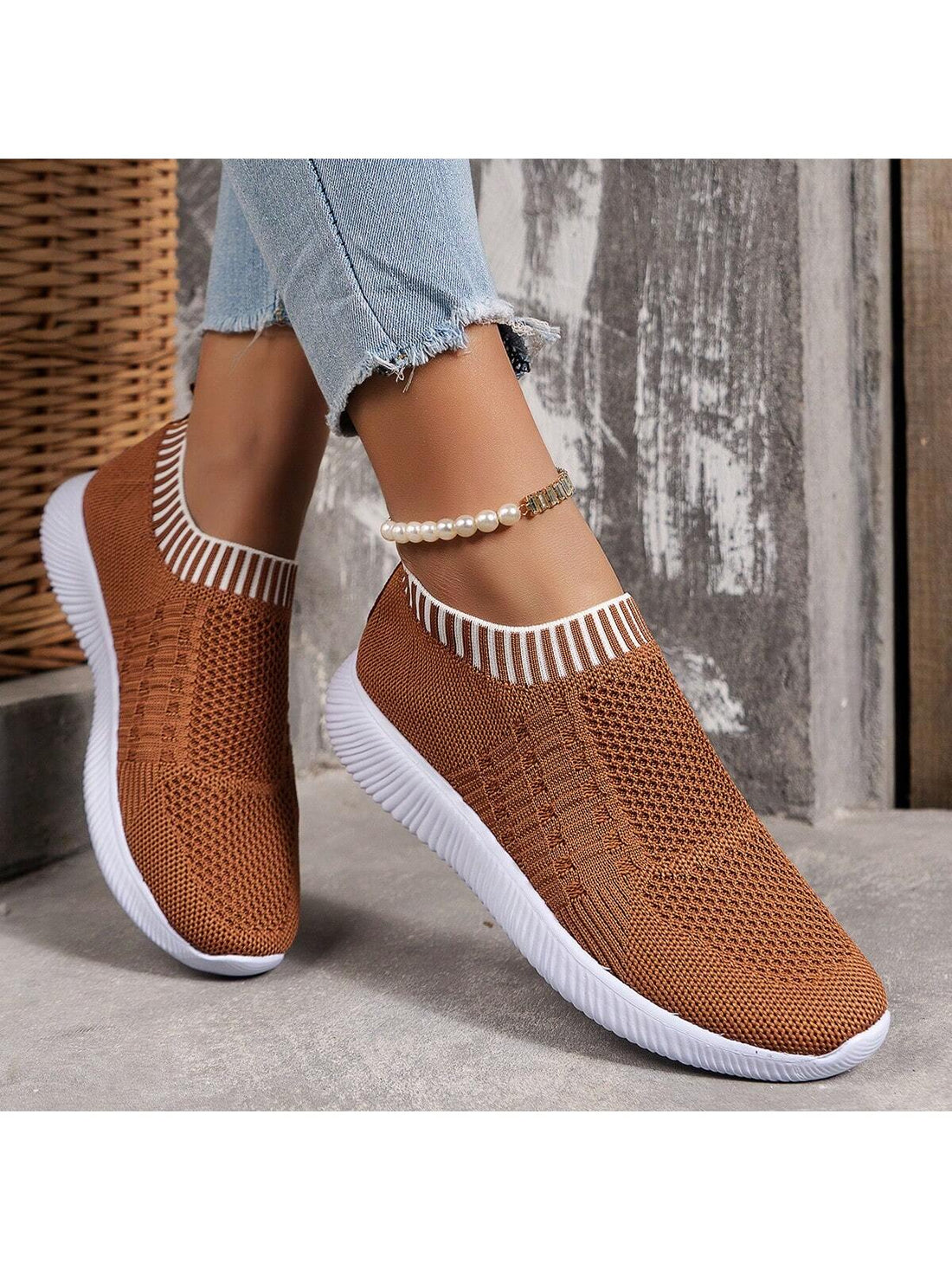 Women's Breathable Knitted Slip-On Sports Shoes - Lightweight & Comfortable Casual Sneakers