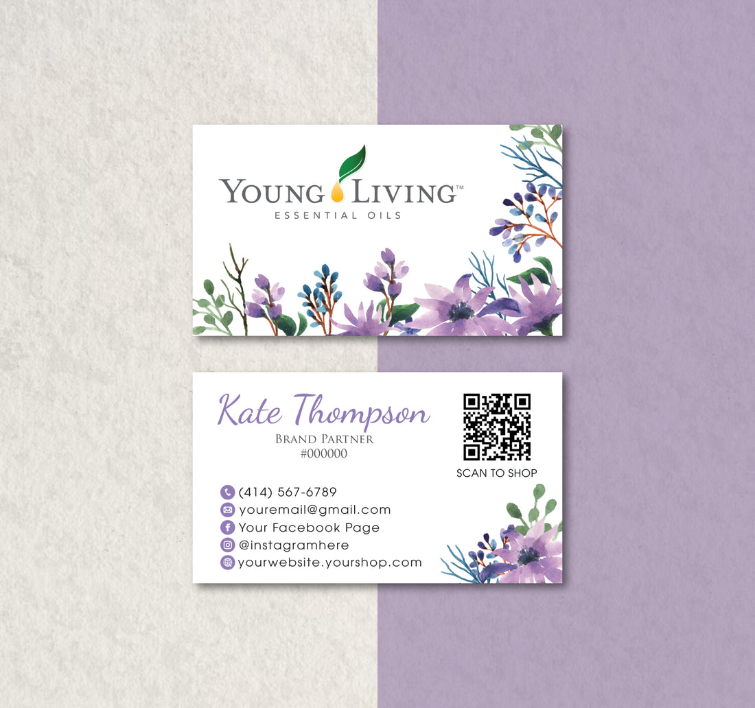 Purple Flower Young Living Business Card, Personalized Young Living Business Cards YL59