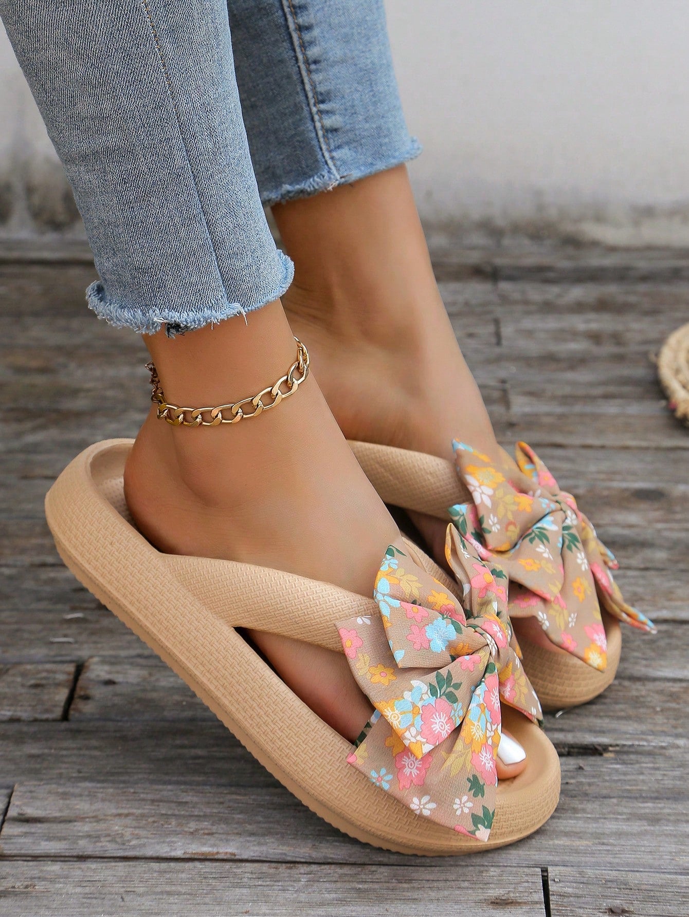 Elevate your summer style with our 2024 Thick-Soled Khaki Beach Sandals. Handmade with a bowknot detail, these slip-on sandals offer both comfort and fashion. Slip into the luxury of our resort style slipper, perfect for any beach getaway.