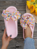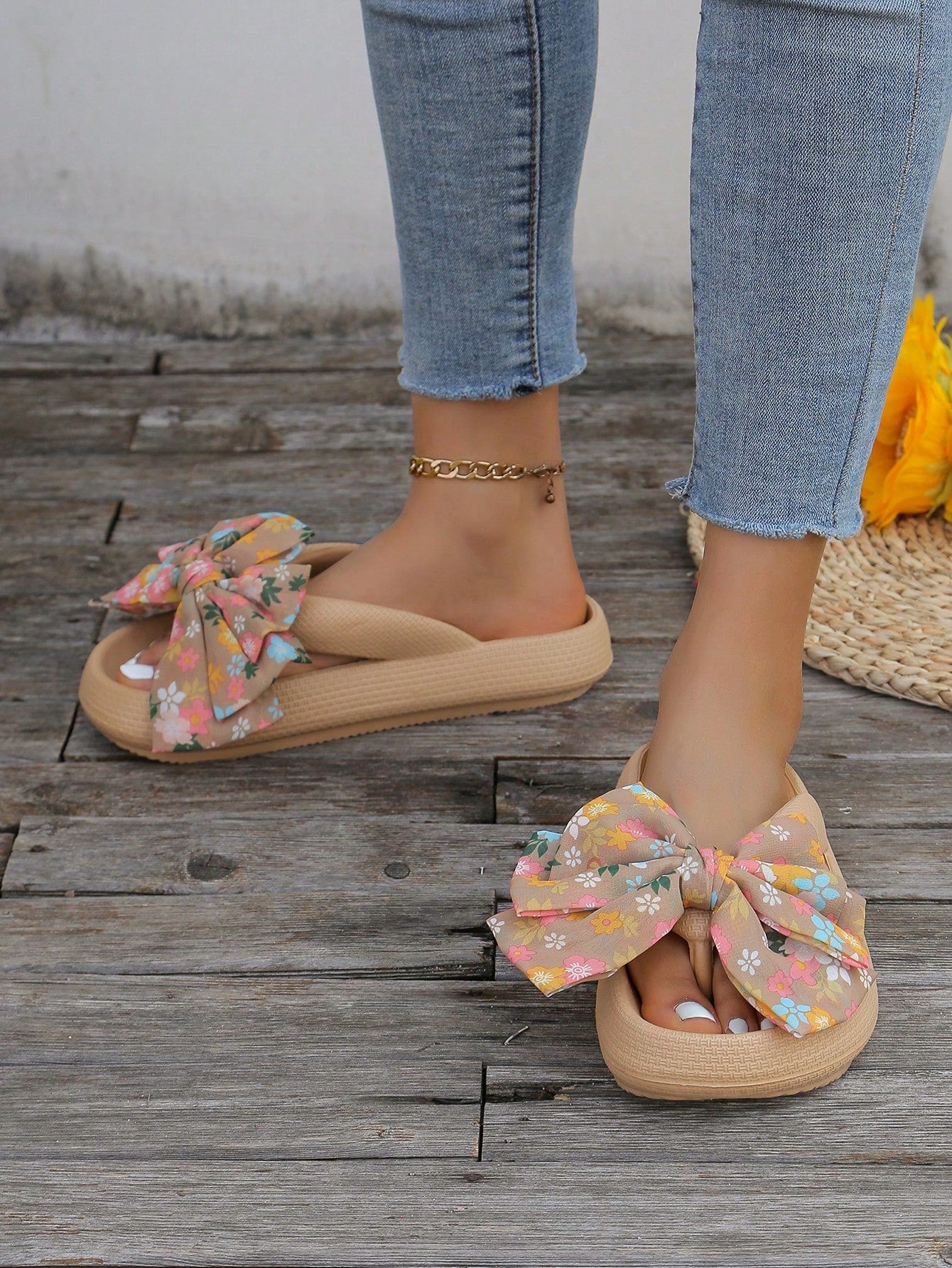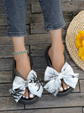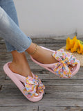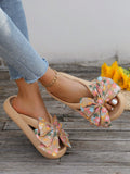 2024 Summer Resort Style Thick-Soled Slipper: Khaki Handmade Beach Sandals with Bowknot Detail
