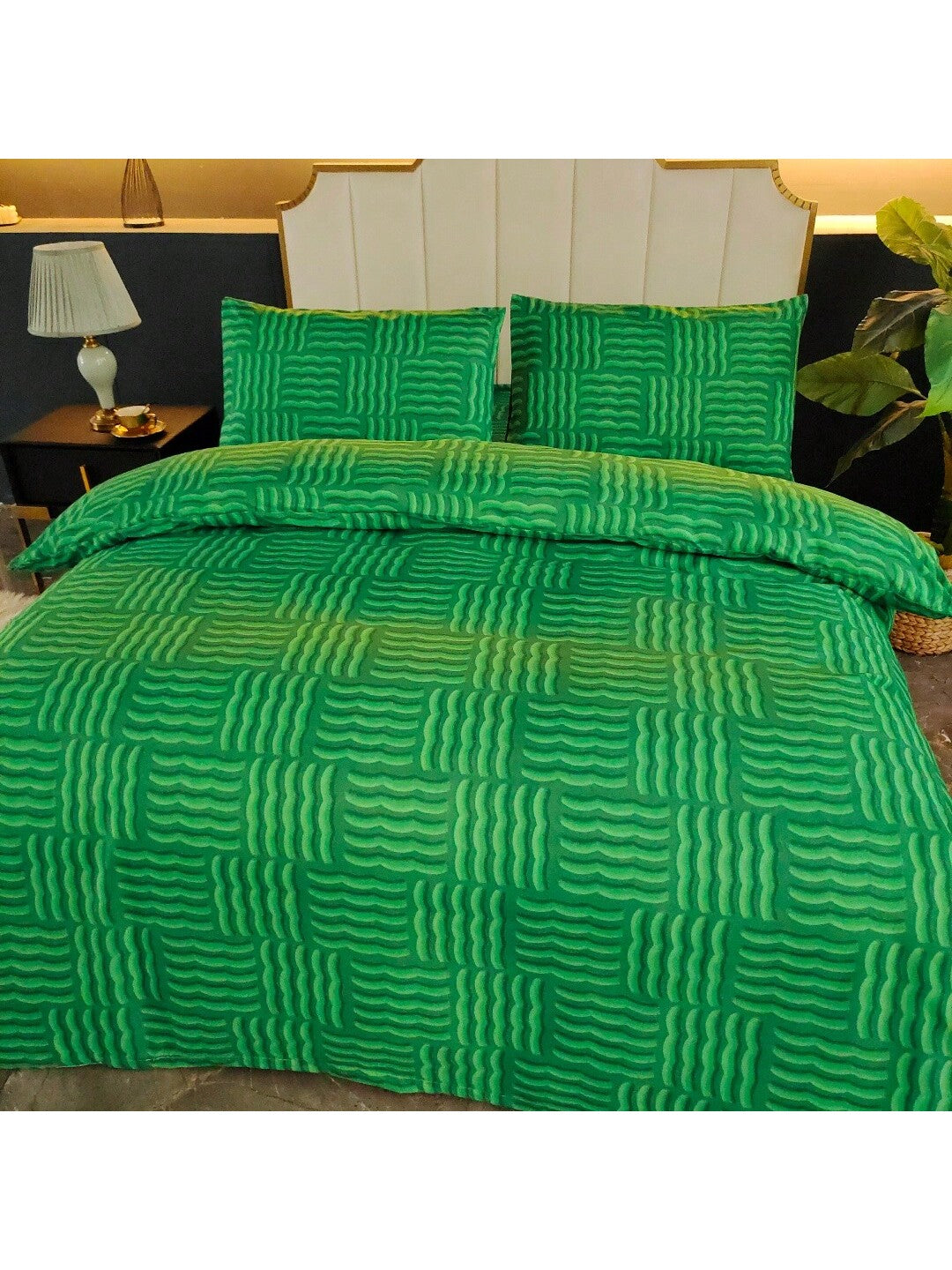 3 Piece Green Dacron Bedding Set - Ultrafine Fiber, Fade Resistant, Easy to Manage - Perfect for All Seasons(1*Duvet Cover 2*Pillowcases, Without Core)