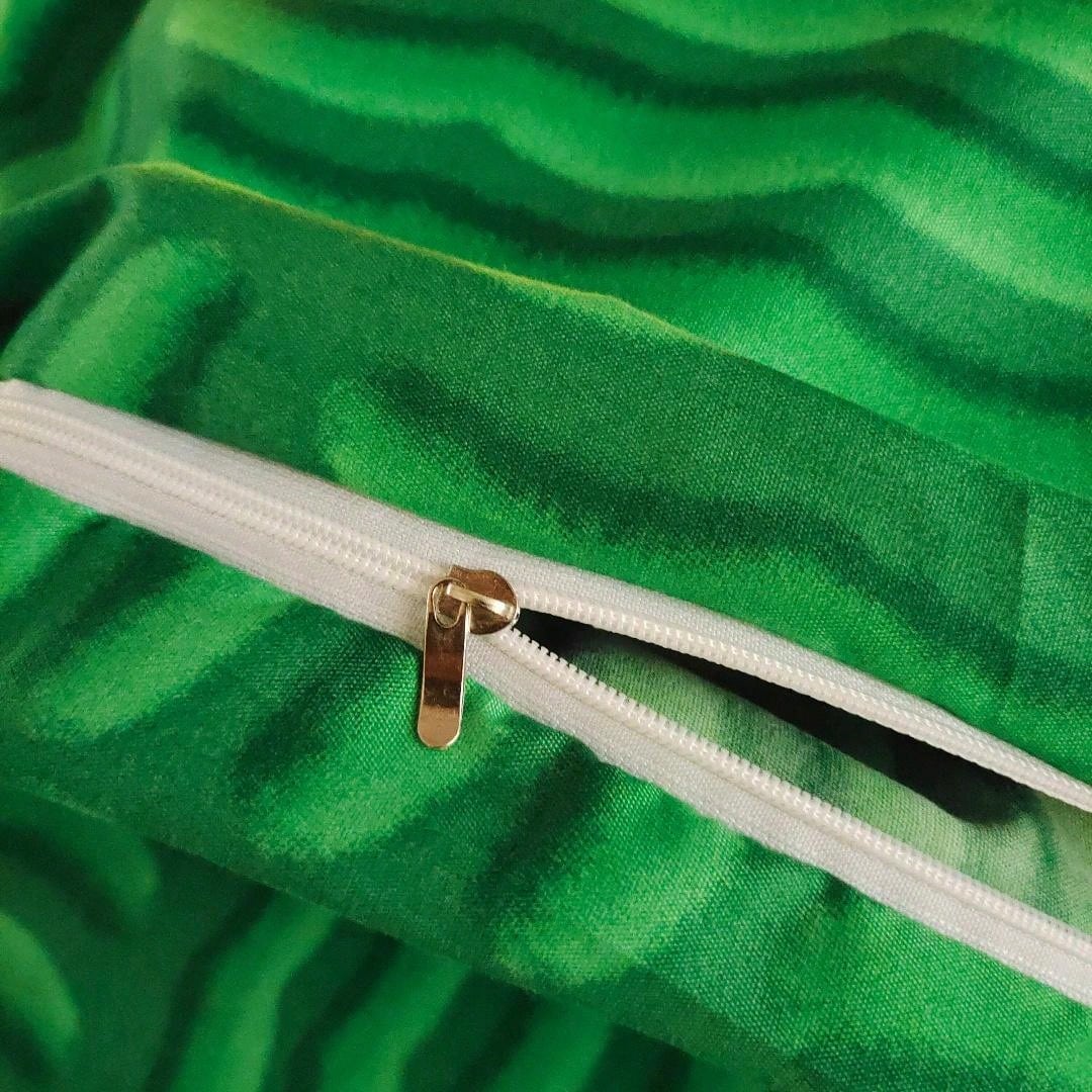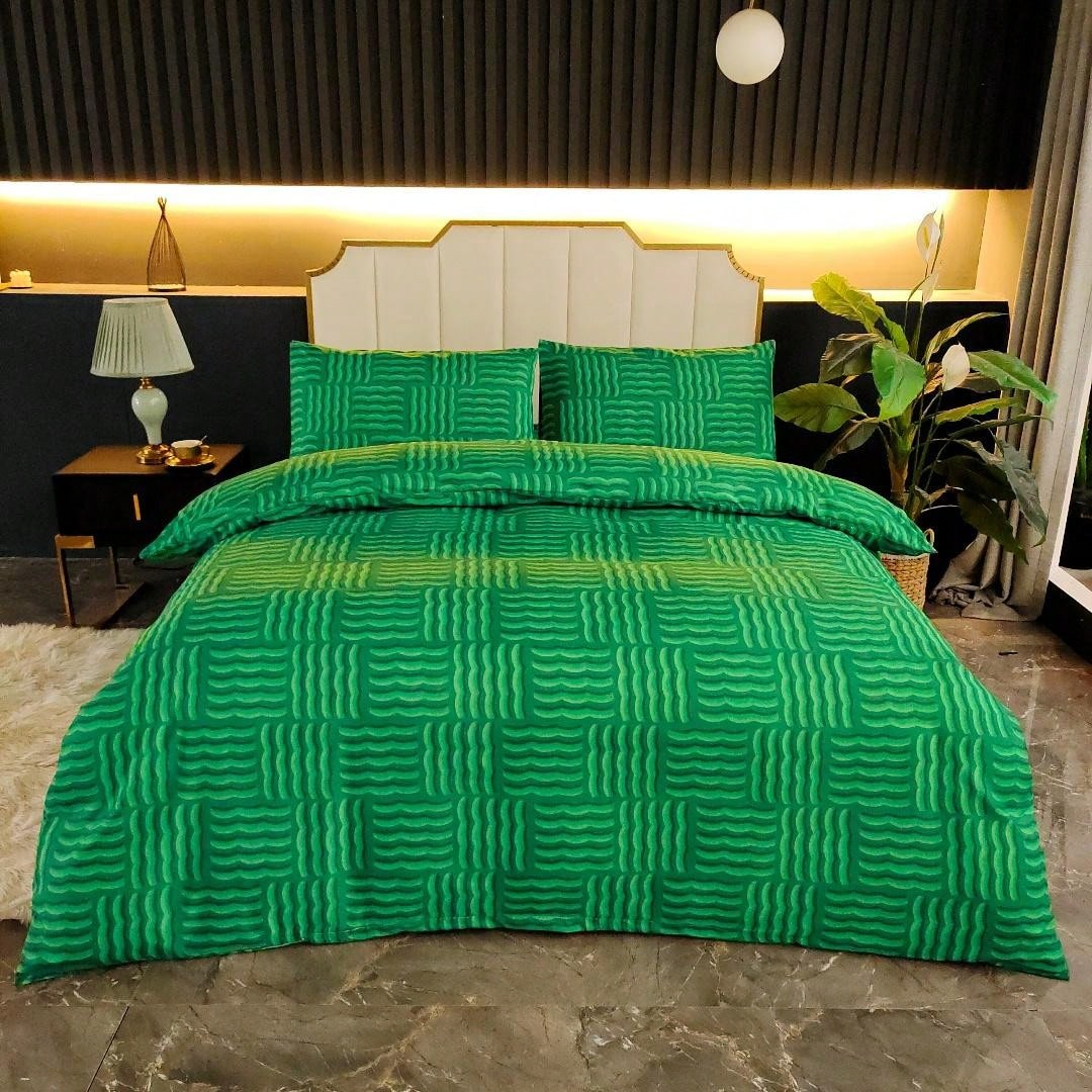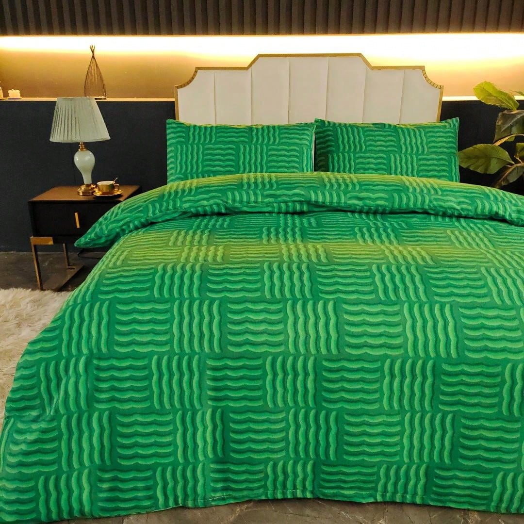 This 3-piece green dacron bedding set is the perfect addition to your bedroom. Its ultrafine fiber material provides a soft and comfortable sleep experience while being fade resistant, ensuring long-lasting use. With easy maintenance and suitable for all seasons, it includes a duvet cover and two pillowcases (without core).